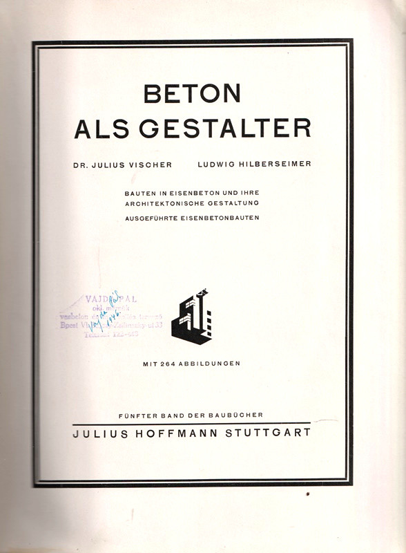 Vischer, Julius - Hilberseimer, Ludwig: Beton als Gestalter. Bauten in Eisenbeton und ihre Archtektonische Gestaltung. Ausgeführte Eisenbetonbauten. Mit 264 Abbildungen.