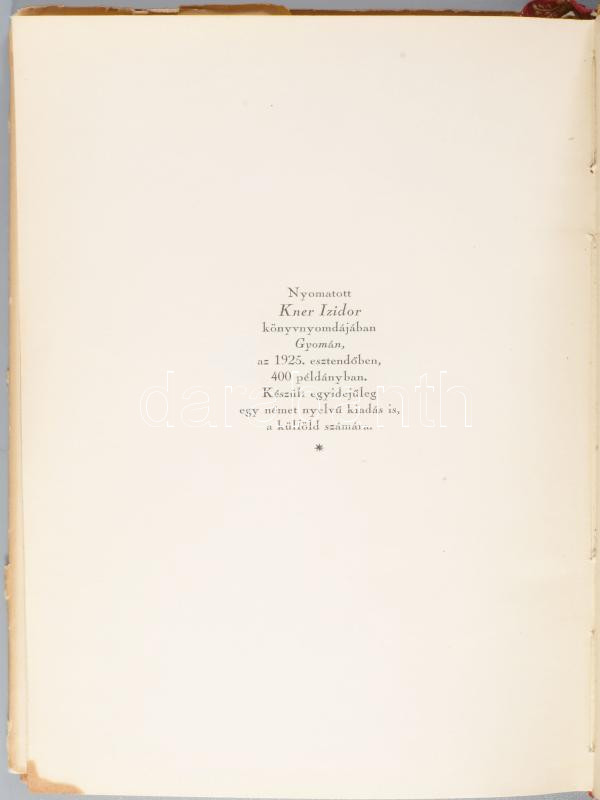 Budapest, 1909. Singer és Wolfner, (Világosság Könyvnyomda Rt.) [12] p. + 27 t. (cinkográfiák) + [2] p. + 3 t. (cinkográfiák) + [6] p. Egyetlen kiadás.