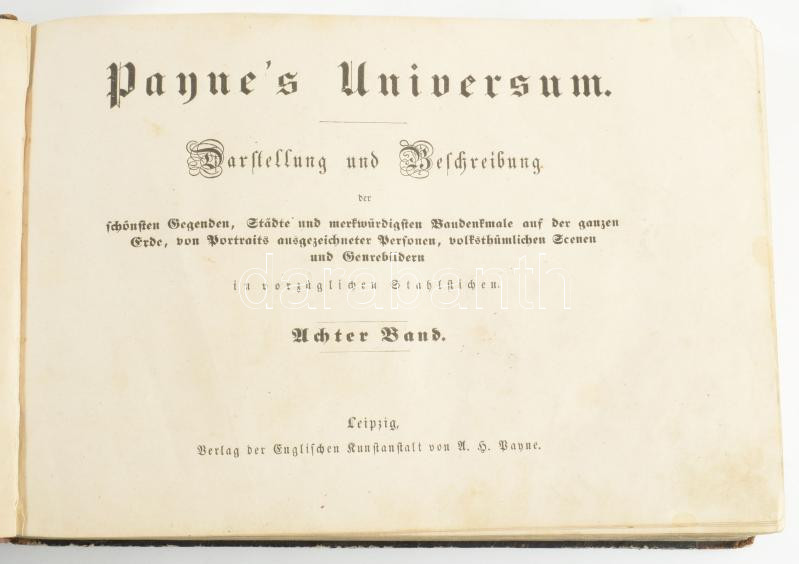 Payne's Universum. Darstellung und Beschreibung. 8. Band Ca 1846. 96 p. 90 db acélmetszetű illusztrációval. Korabeli aranyozott félbőr kötésben