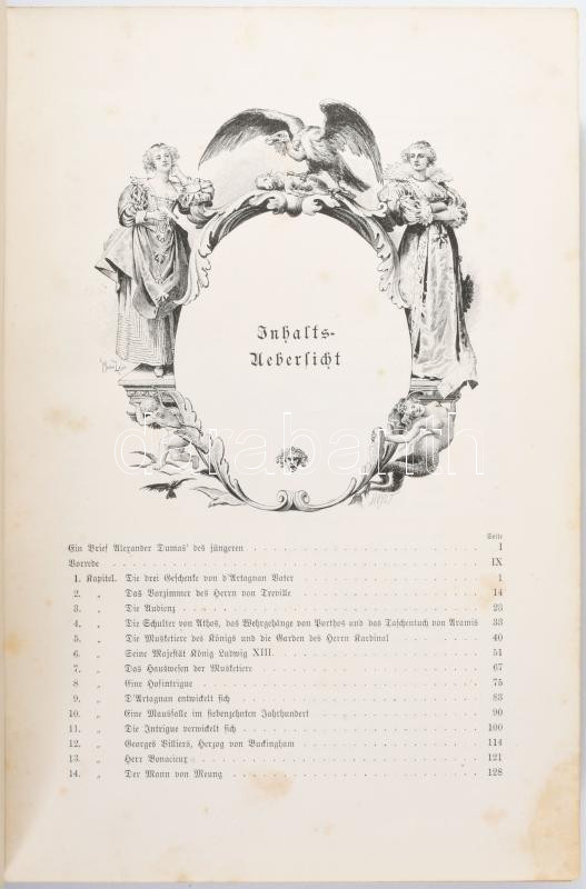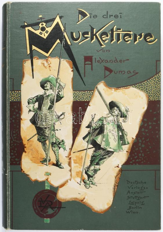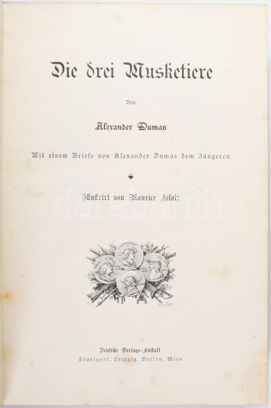 Dumas, Alexandre: Die drei Musketiere. Mit einem Brief von Alexandre Dumas dem Jüngeren. Illustriert von Maurice Leloir. Leipzig, Berlin und Wien (1890) Deutsche Verlags Anstalt. 590 (2) p. Festett egészvászon kötésben