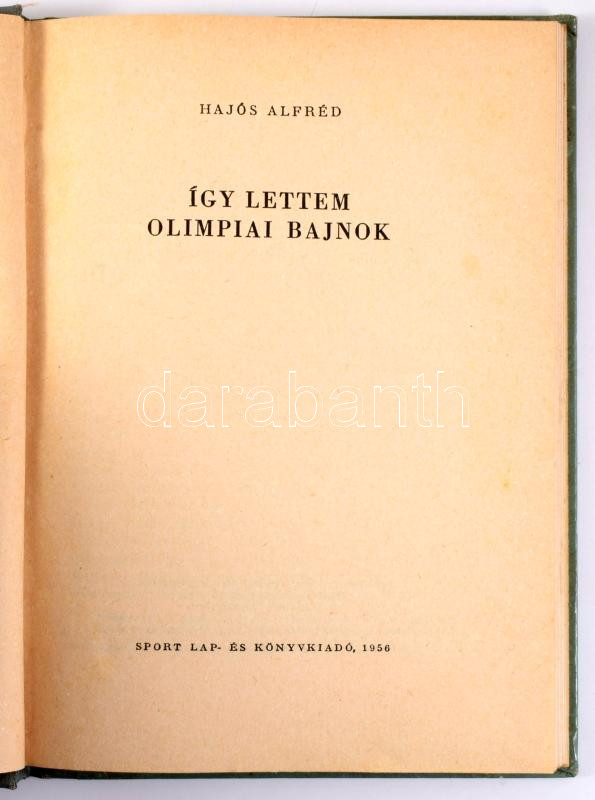 Hajós Alfréd: Így lettem olimpiai bajnok. Bp., 1956, Sport Lap- és Könyvkiadó, 95 p.+ 12 t. Egyetlen kiadás. Egészoldalas fekete-fehér fotókkal illusztrálva. Kiadói félvászon-kötés, jó állapotban. Megjelent 2100 példányban.
