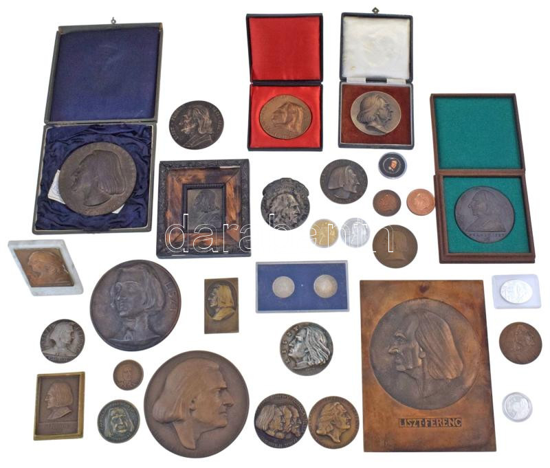 Rendkívül tartalmas, a 20. századot átölelő Liszt Ferenc plakett, emlékérem és forint emlékérme tétel, benne: