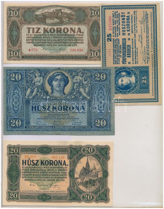 Rendkívül tartalmas 95db-os korona-pengő bankjegy tétel, közte sok ritka kiadás vagy ritkán előforduló állapotban. A tételben 37 darab korona bankjegy és 58 darab pengő bankjegy található, a gyakori darabok mellett az alábbi jobb darabokkal: