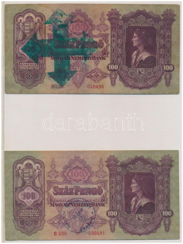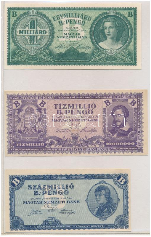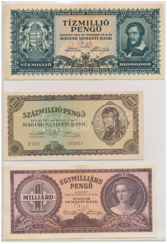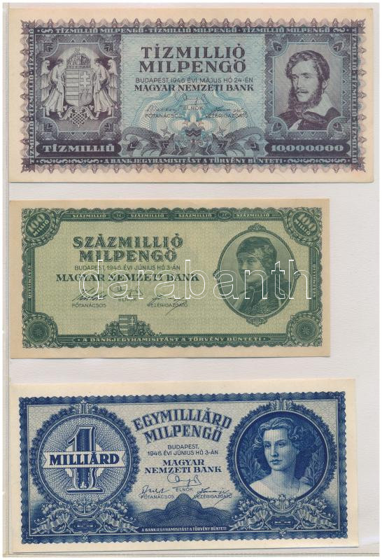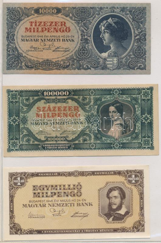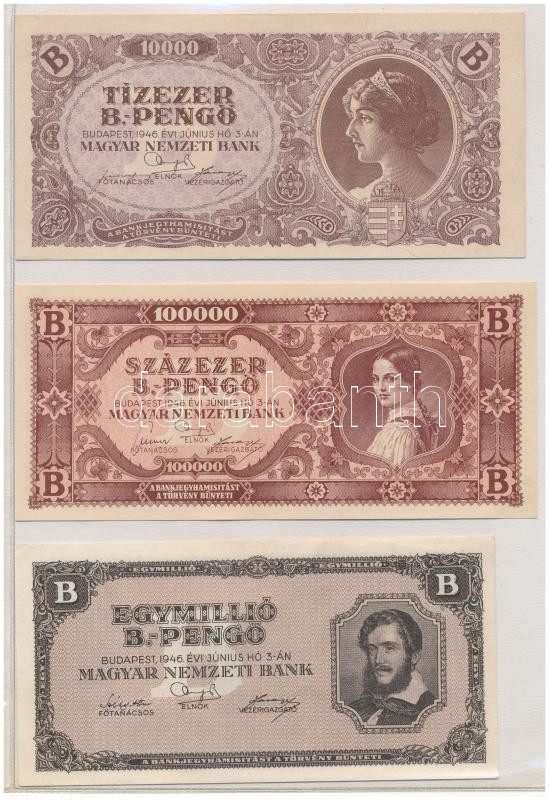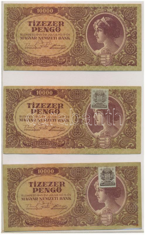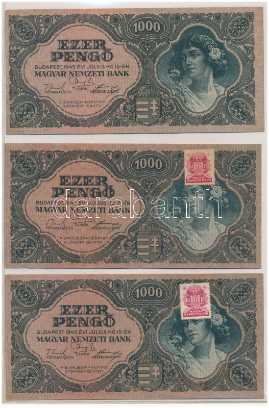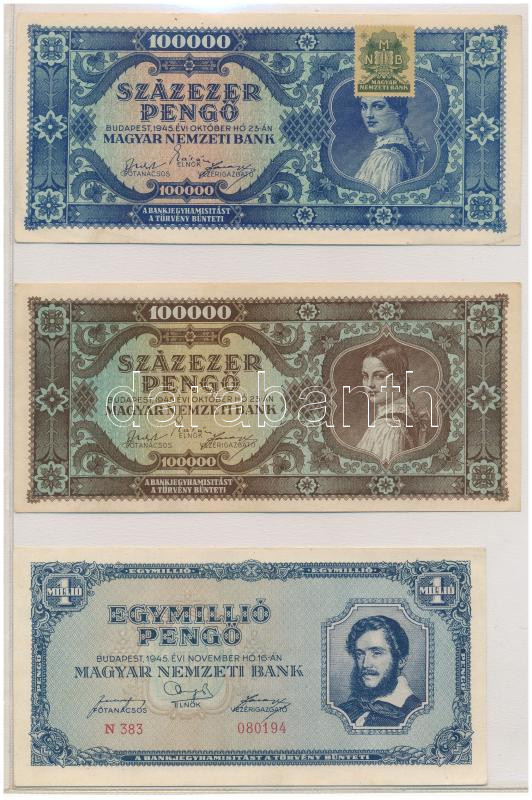 • 1945. 100.000P kék színű "M 014 034481", zöld "MNB" bélyeggel