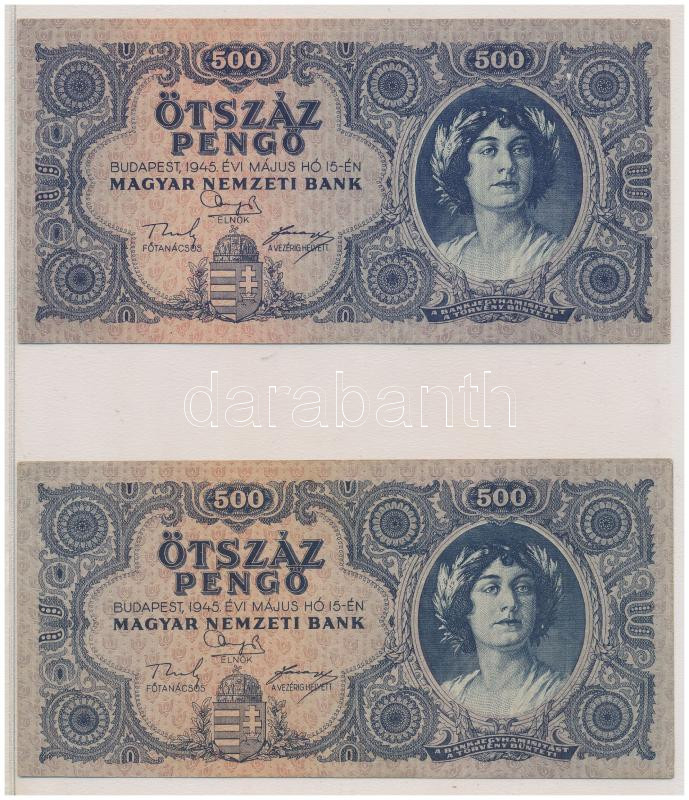 • 1945. 500P magyar "N" betű orosz "P" helyett + helyes szövegezésű támpéldány