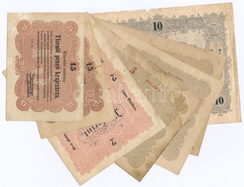 Hét darabos bankjegy tétel az 1848-as szabadságharc időszakából, vegyes tartásban (F szép papír -VG)benne: