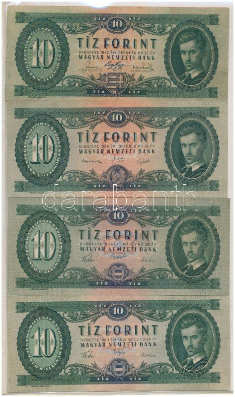 • 1947-1975. 10Ft (8xklf), ebből érdekesebb évjáratok 1947. 10Ft "A643 035232" és 1949. 10Ft "A 147 060187"