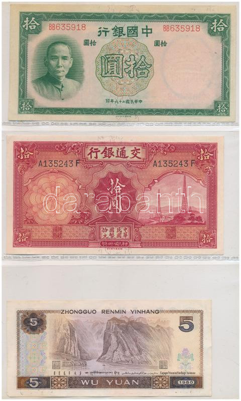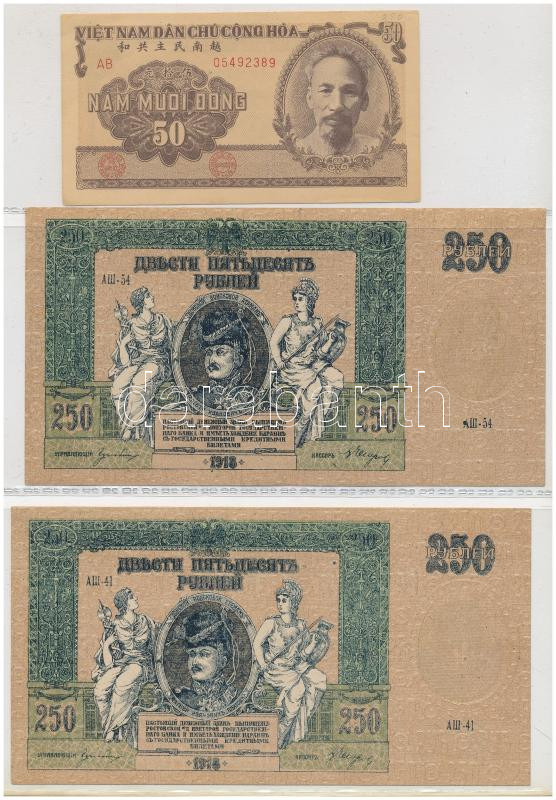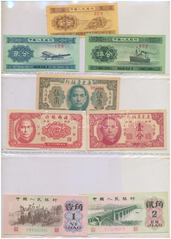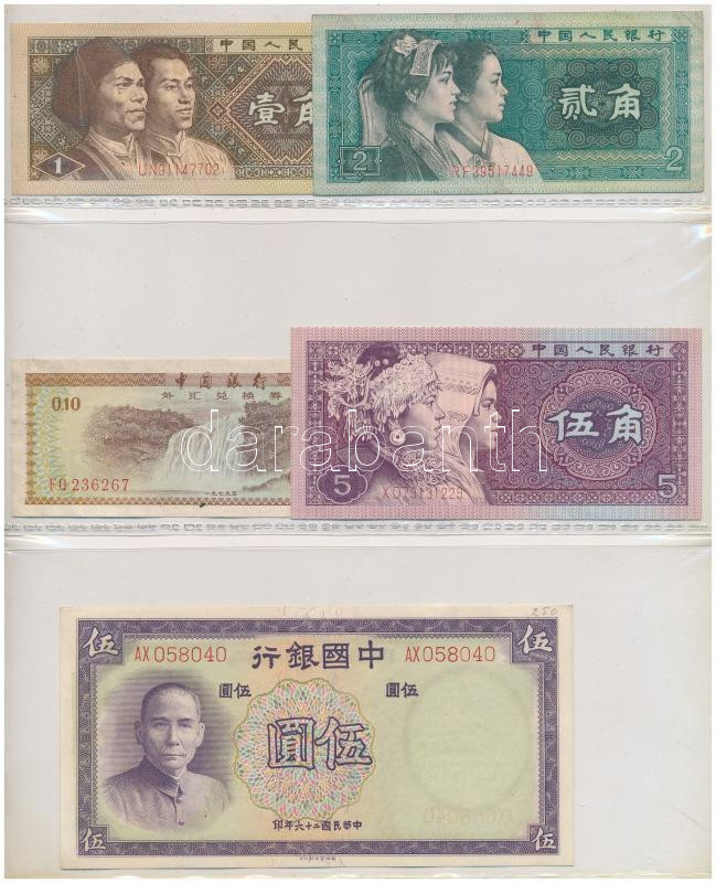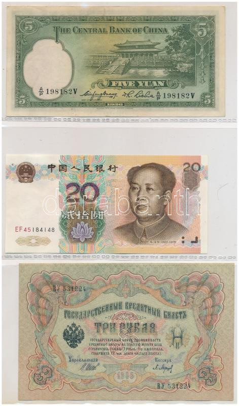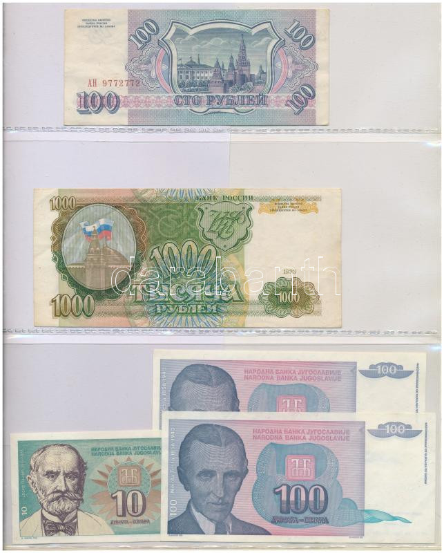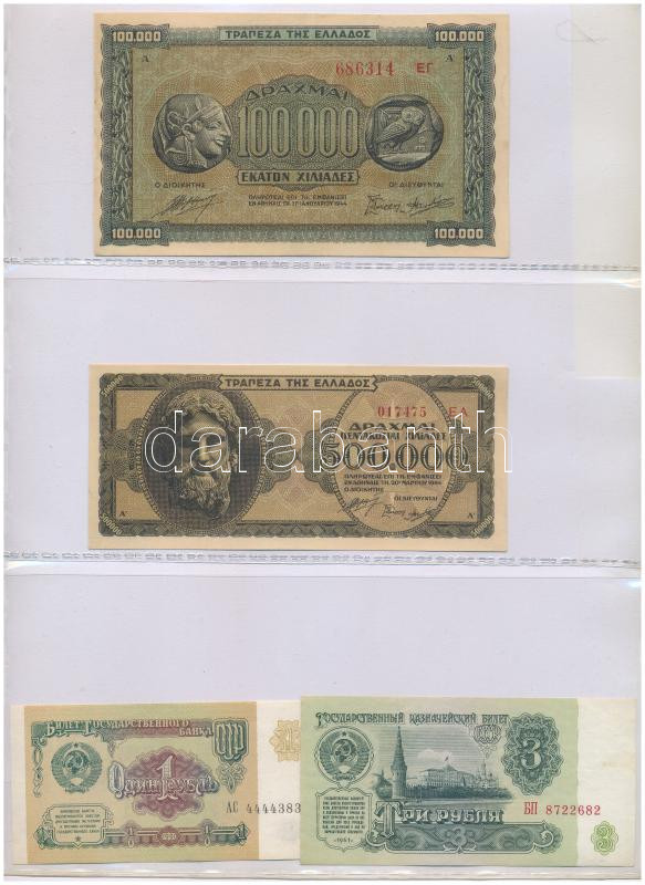 Vegyes, 56db-os külföldi bankjegy tétel, benne Kínai Köztársaság, Kínai Népköztársaság, Jugoszlávia, Német Birodalom, Orosz Birodalom, Orosz Polgárháború, Szovjetunió, Oroszország, Görögország valamint német szükségpénzek, illetve kevés bankjegy Afrikából, Vietnamból, összességében vegyes, de többnyire UNC,AU tartásban