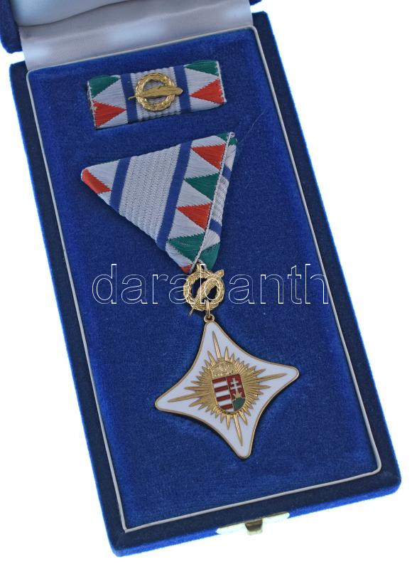 Hungary 2001. "Bertalan Szemere Badge of Honour" gilt, enamelled bronze decoration with ribbon, with miniature on miniature ribbon, in decorative case C:AU