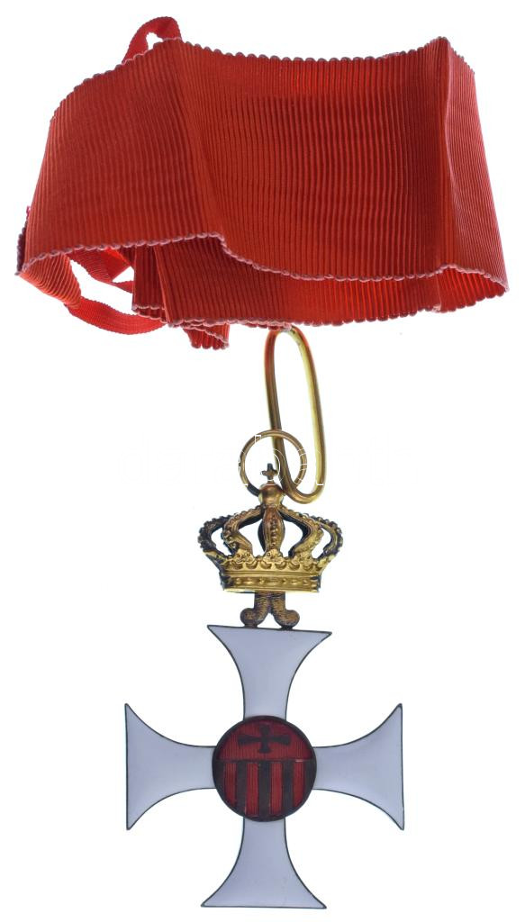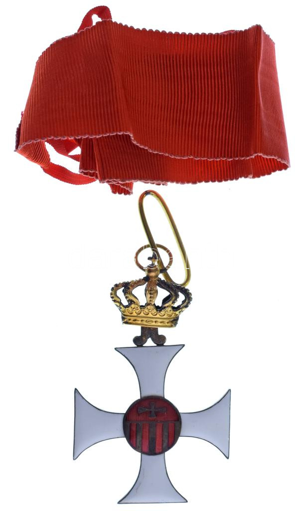 Spanyolország 1935 k. "Irgalmasság Rendje középkeresztje" aranyozott, zománcozott bronz kitüntetés eredeti "Gra Vanzola Roma" gyártói tokban, szalaggal (45x71mm) T:AU aranyozás kicsit kopottas