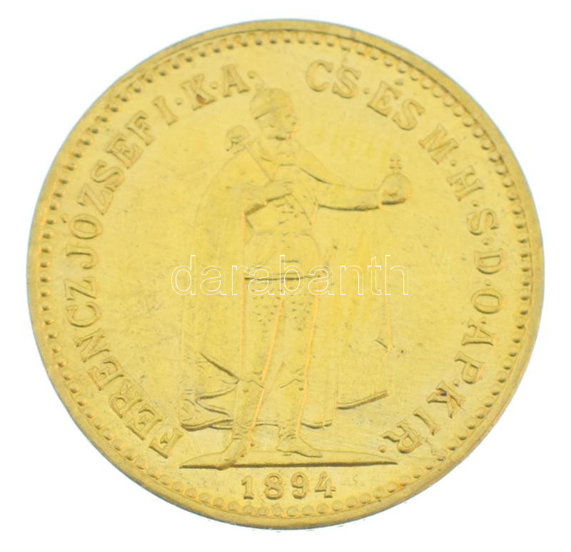 Hungary 1894KB 10 Korona Au "Franz Joseph I" Kremnitz / Kremnica in capsule, die error on the backside, at the "CS" letters (3,38g/0.900) C:AU,XF