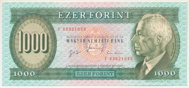 1996. 1000Ft "F 03021033" nyomdai papírránccal T:UNC / Hungary 1996. 1000 Forint "F 03021033" with paper crease C:UNC