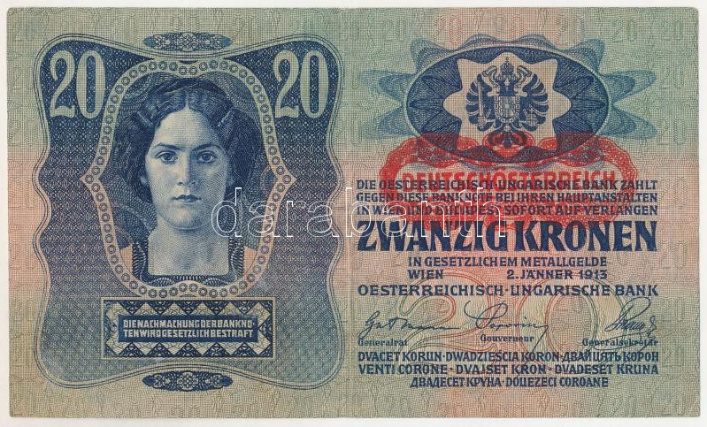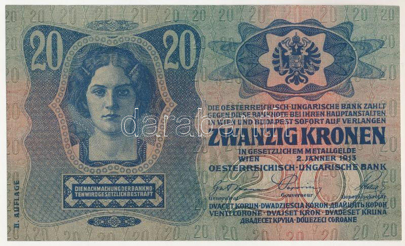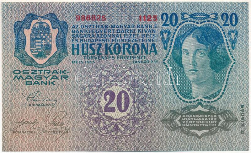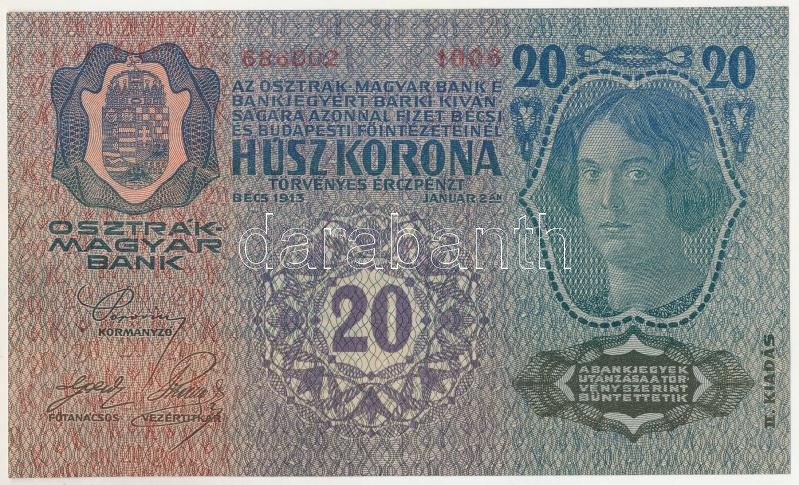 1913. 20K "1006 686002" második kiadás T:XF / Hungary 1913. 20 Korona "1006 686002" 2nd issue C:XF