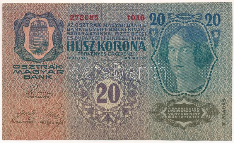 1913. 20K "2289 946560" T:AU / Hungary 1913. 20 Korona "2289 946560" C:AU