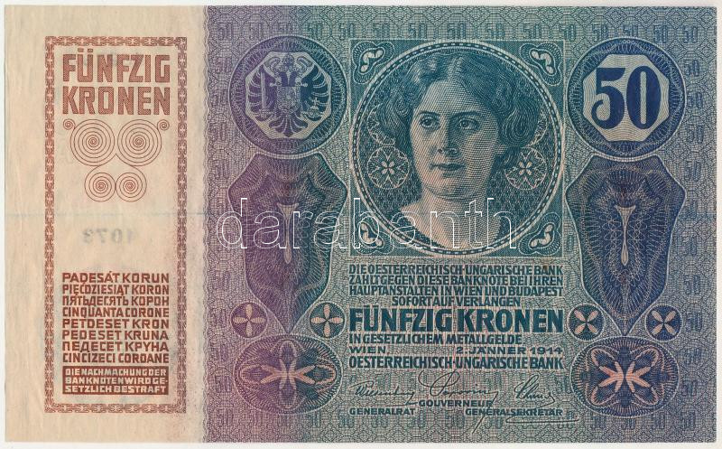 1914. 50K "1073 852793" T:UNC / Hungary 1914. 50 Korona "1073 852793" C:UNC