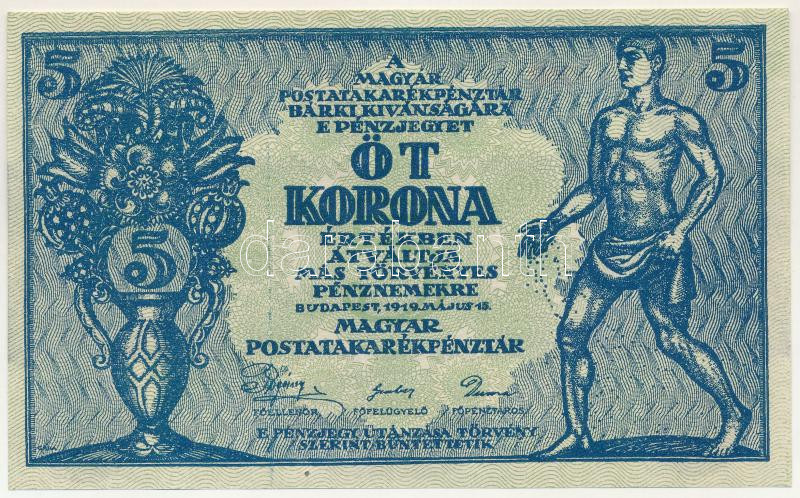 1919. 5K "MÁS TÖRVÉNYES..." , "058 387.777" T:UNC / Hungary 1919. 5 Korona "058 387.777" C:UNC