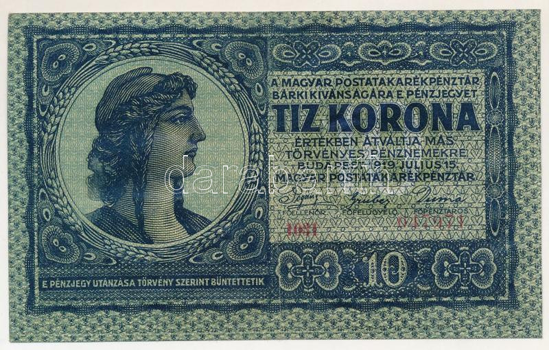 1919. július 15. 10K "1031 047971" T:XF felület csillog / Hungary 15th July 1919. 10 Korona "1031 047971" C:XF shiny surface