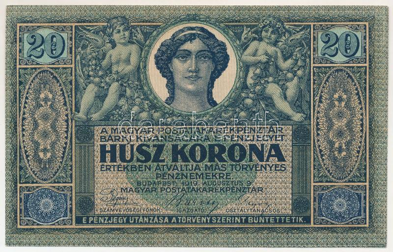Hungary 1919. August 9th 20 Korona "R 2002 080984" C:F restored