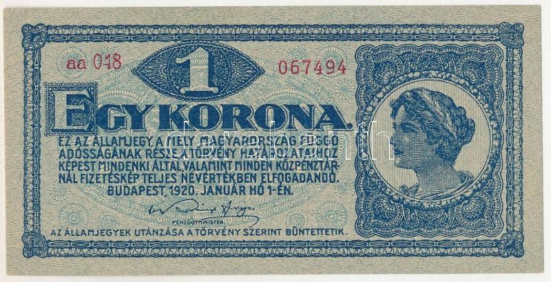 1920. 1K "aa 048 067494" T:UNC / Hungary 1920 1 Korona "aa 048 067494" C:UNC