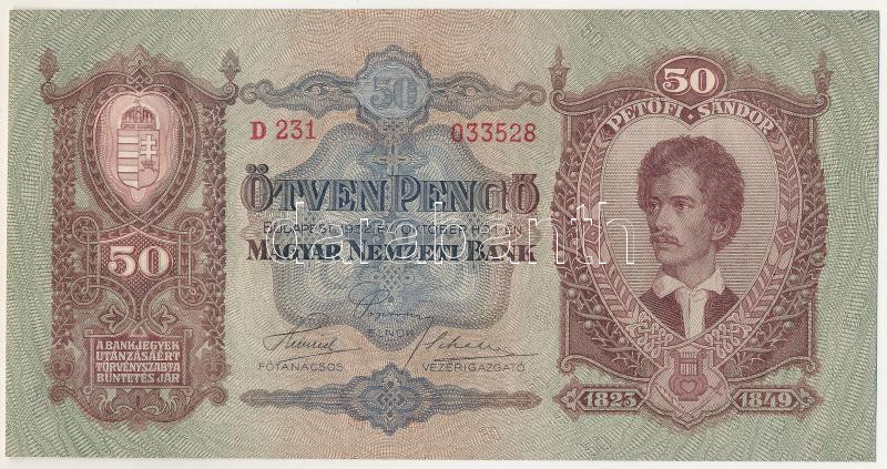 1932. 50P "D 231 033528" T:UNC / Hungary 1932. 50 Pengő "D 231 033528" C:UNC