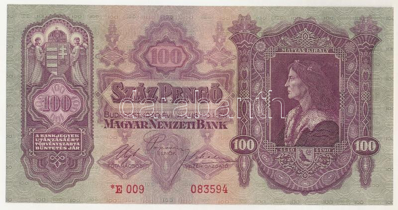 1930. 100P "*E 009 083594" T:UNC / Hungary 1930. 100 Pengő "*E 009 083594" C:UNC