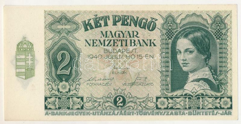 1940. 2P "J 613 093333" T:UNC / Hungary 1940. 2 Pengő "J 613 093333" C:UNC