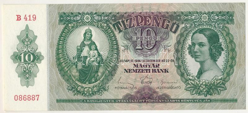 1936. 10P "B 419 086887" T:UNC / Hungary 1936. 10 Pengő "B 419 086887" C:UNC