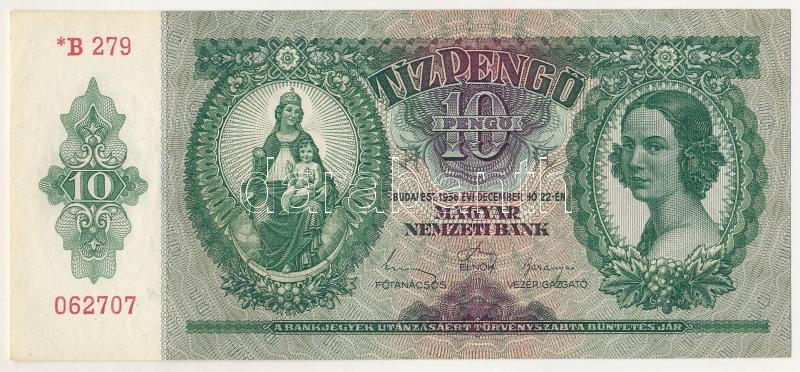 1936. 10P "*B 279 062707" T:UNC / Hungary 1936. 10 Pengő "*B 279 062707" T:UNC