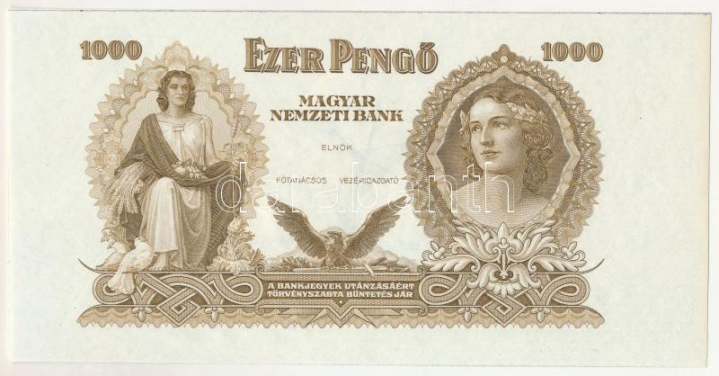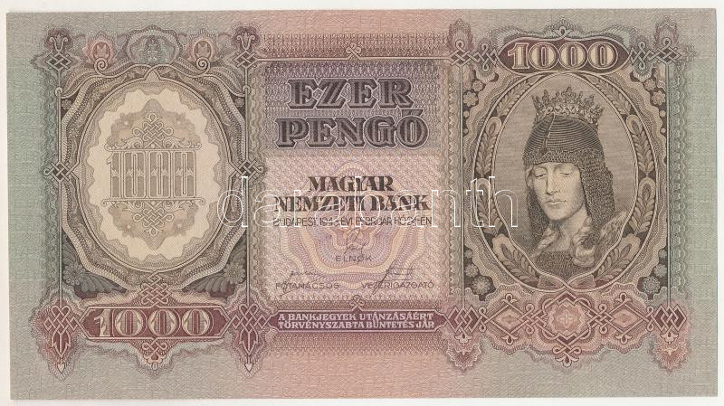 1943. 1000P "F 063 084722" T:UNC / Hungary 1943. 1000 Pengő "F 063 084722" C:UNC