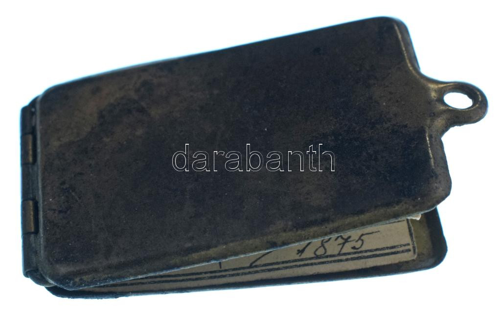 DN A M. Kir. 29. honvéd gyalogezred szakaszvezetőjének nyitható katonai dögcédulája, hozzá tartozó személyi papírral, melyen feltüntették az illető (Kaszab Emánuel) római katolikus vallását, és személyes adatait (~34x53mm) T:XF