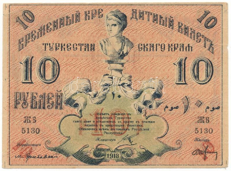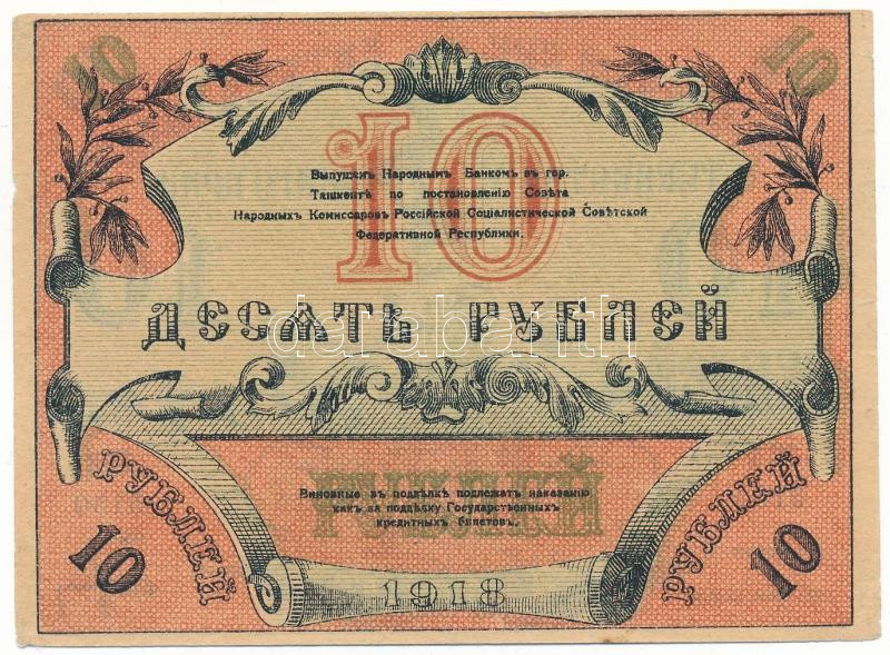 Russian Civil War / Russian Central Asia / Turkestan 1918. 10 Rubles C:F