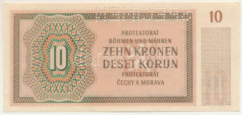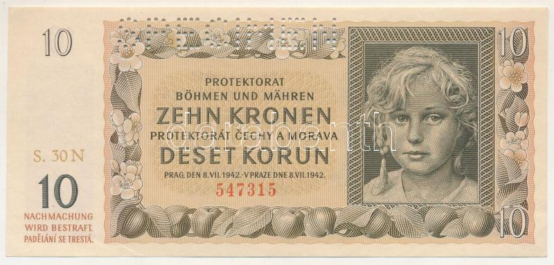 Német Harmadik Birodalom / Cseh-Morva Protektorátus 1942. 10K "30 N 547315", "SPECIMEN (MINTA)" perforációval T:UNC,AU