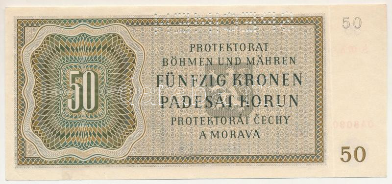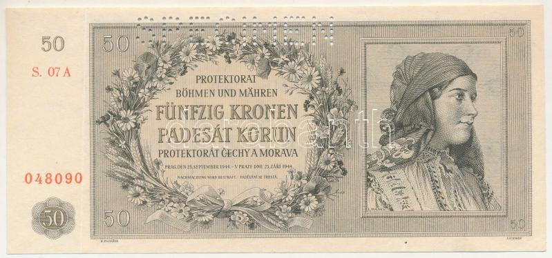 Német Harmadik Birodalom / Cseh-Morva Protektorátus 1944. 50K "07 A 048090", "SPECIMEN (MINTA)" perforációval T:XF
