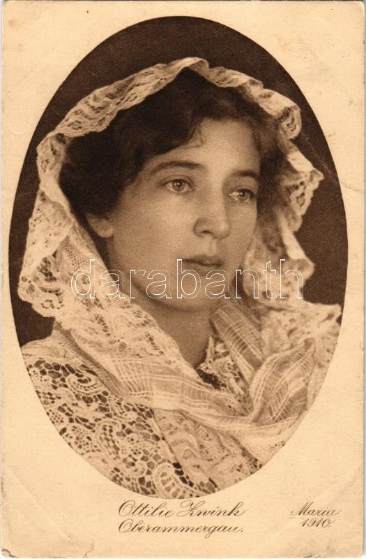 Ottilie Zwink playing Virgin Mary in the Oberammergau Passion Play 1910 (szakadás / tear)