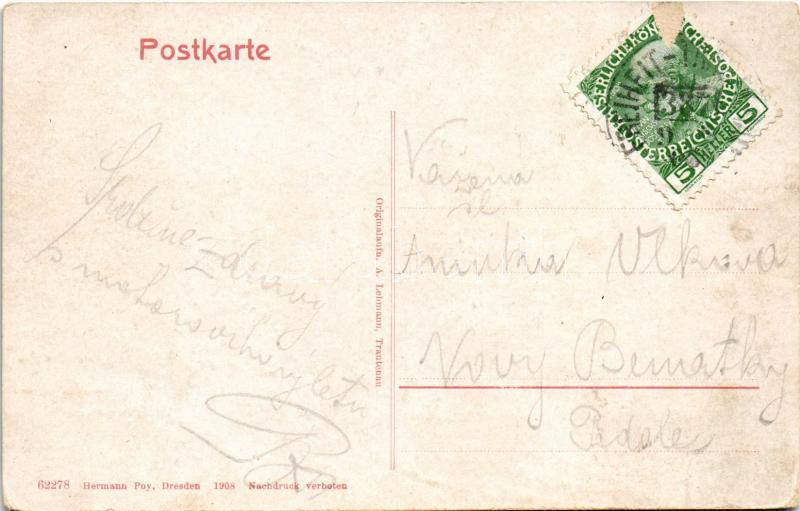 1901 Jindrichovice pod Smrkem, Heinersdorf an der Tafelfichte; Kirche, Villa Max von Heintschel, Ruine der Jacobskirche / church, villa, church ruins. Rudolf Rückert Art Nouveau, floral frame (small tear)