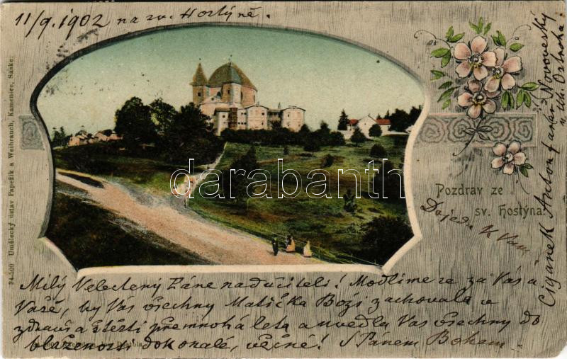1902 Hostyn, Svaty Hostyn; castle, church. Art Nouveau, floral (EM)