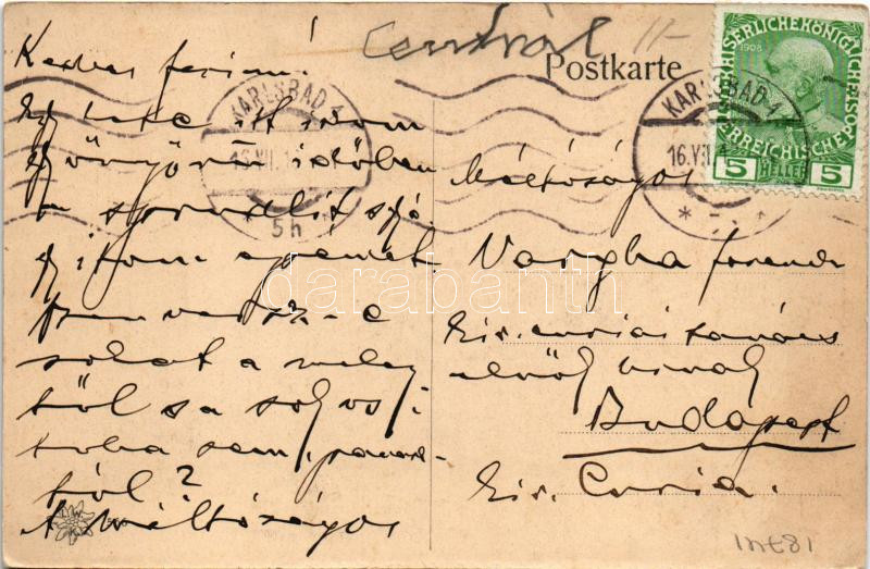 1903 Karlovy Vary, Karlsbad; Etablissement Jägerhaus / restaurant (fl)