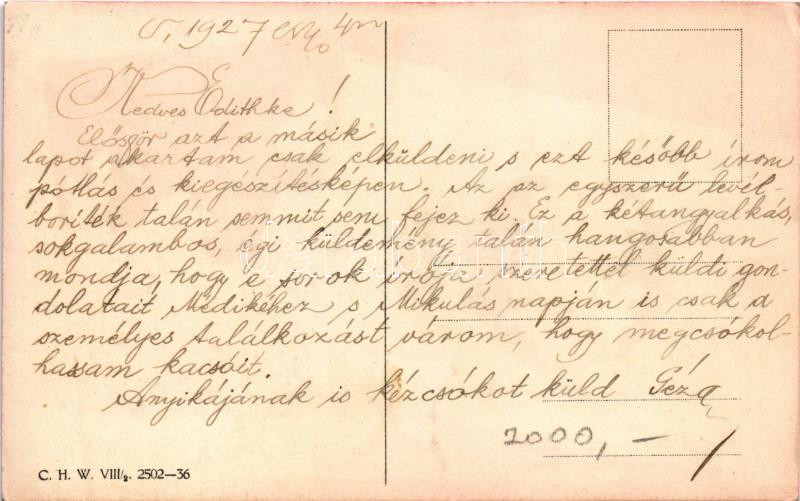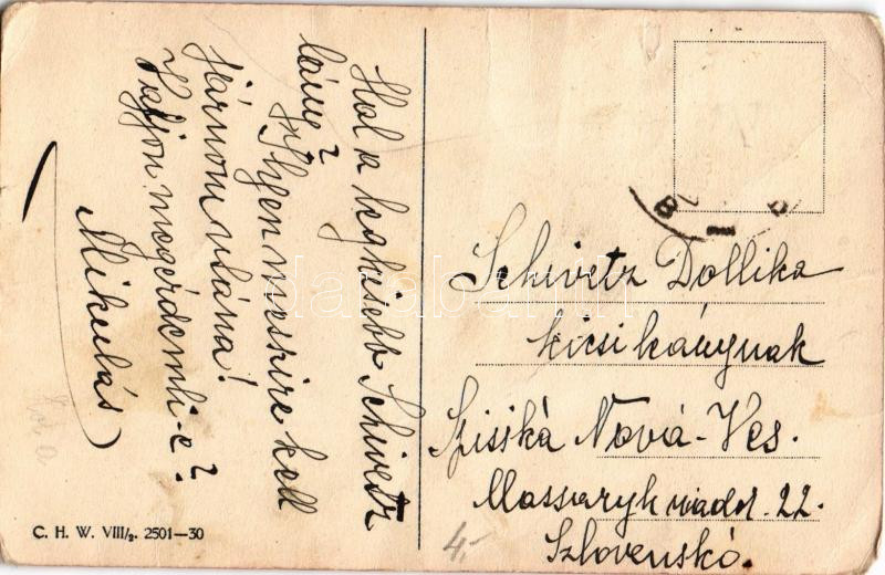 Üdvözlet a Mikulástól / Saint Nicholas greeting art postcard. C. H. W. VIII/2. 2503-30. (EK)