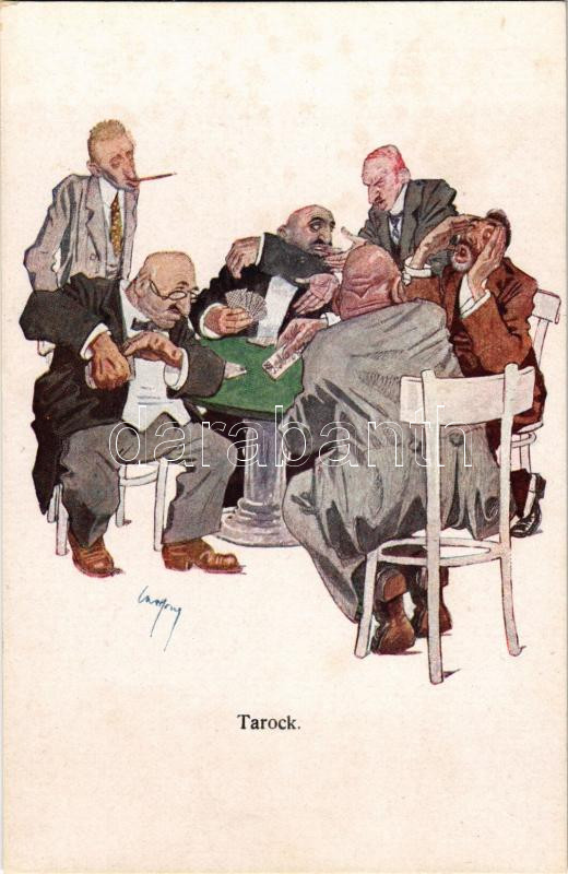 Tarock. Gentlemen playing card games, art postcard. B. K. W. I. 234-4. s: Carl Josef (fl)