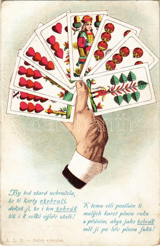 Tell playing cards with Czech poem (r)