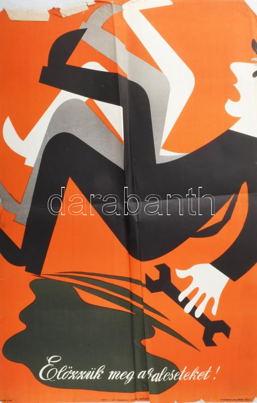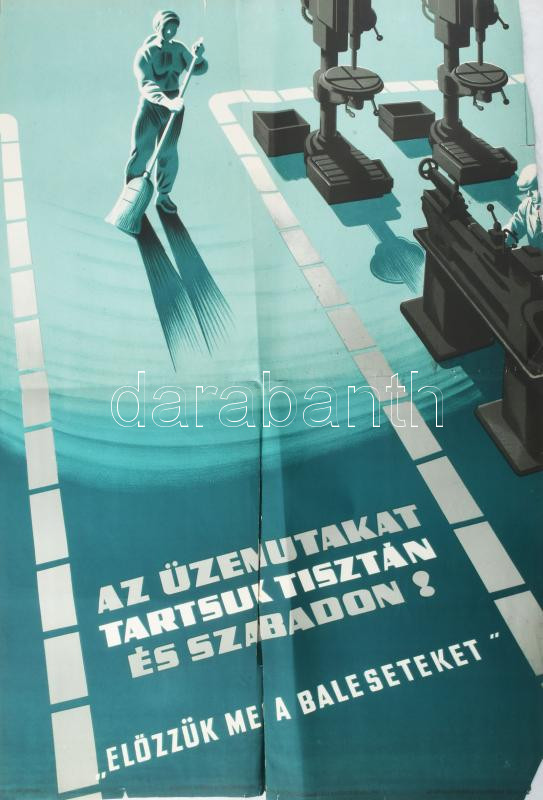 cca 1950-60 3 db szocreál munkavédelmi plakát, hajtva, sérülésekkel, 70x47 cm körüli méretekben