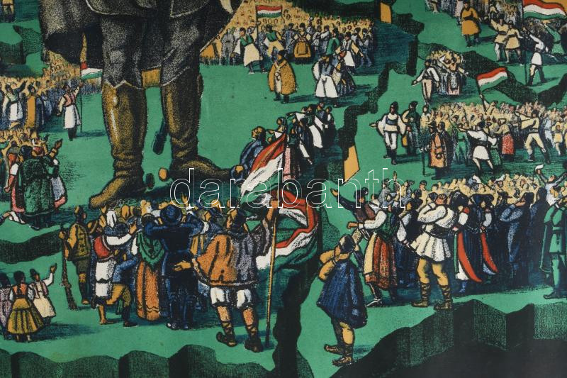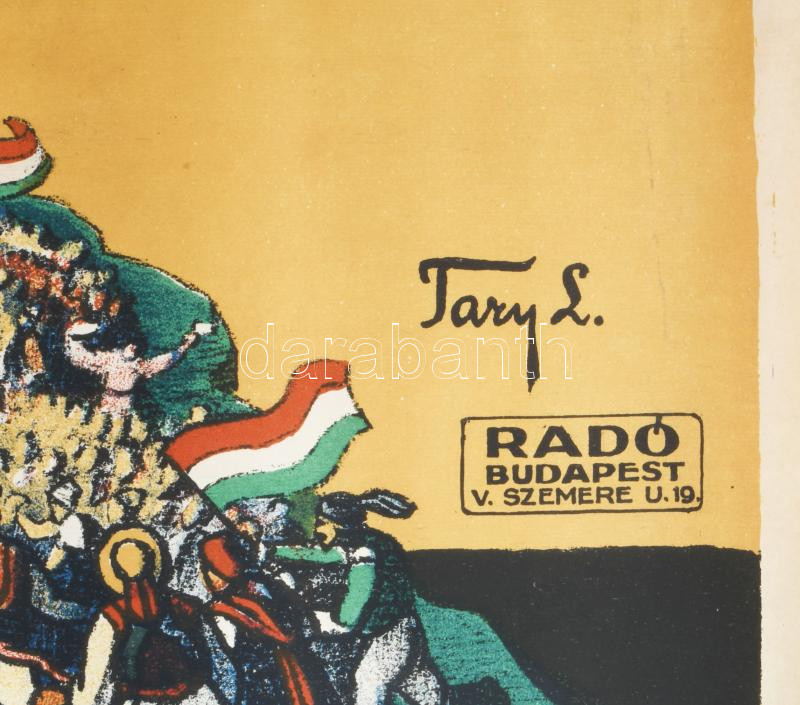 Tary Lajos (1884-1972): Szózat. Nagyméretű irredenta plakát. Litográfia, papír, jelzett a plakáton. Bp., é.n. (1920 körül), Radó Műintézet, Bp.. 63×95 cm. Bal alsó sarkában apró szakadásokkal, máskülönben jó állapotban. / cca 1920 Large irredentist poster . Lithography. 63x90 cm