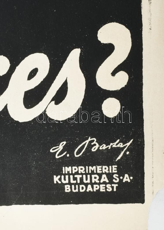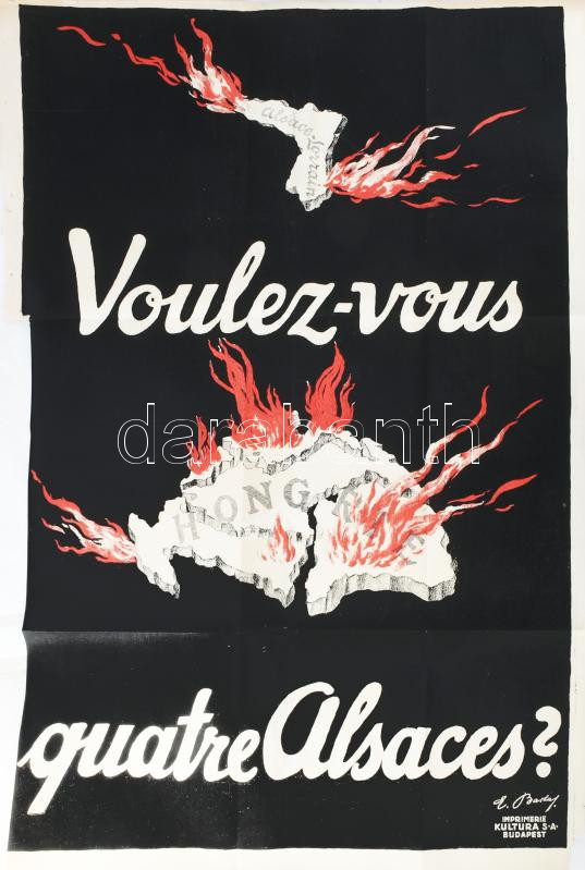 Barta Ernő (1878-1956): Voulez-vous quatre Alsace? Francia nyelvű magyar irredenta plakát, 1919 körül, litográfia, papír, jelzett a plakáton, Kultura, Bp., hajtva, lapszéli sérülésekkel, bal szélén vágott, 93x60 cm