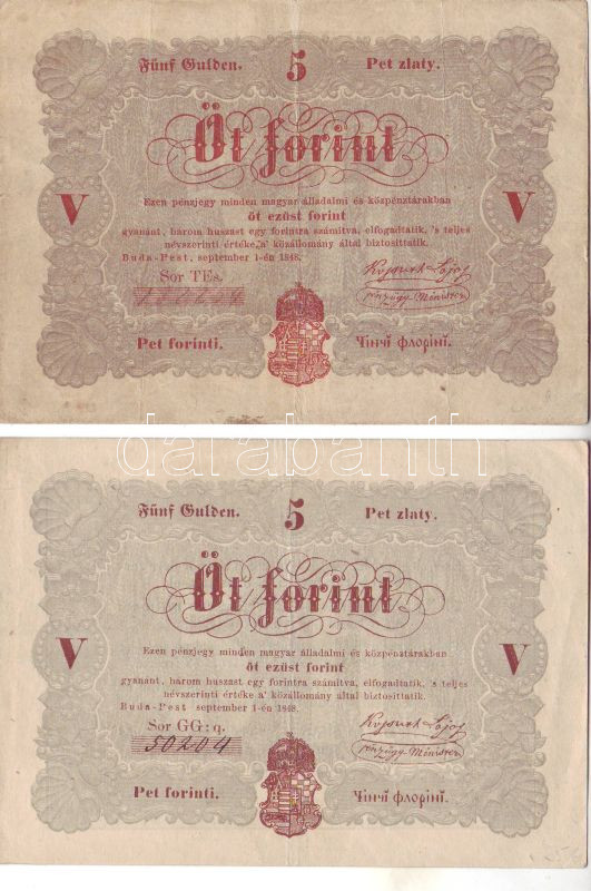 https://www.darabanth.com/en/46-Online-auction/46.0/Numismatics/~191/1848-5Ft-Kossuth-banko-2x-egyiknel-hatlapi-roman-nyelvu-szovegben-ekezet-tevnyomattal-~II92921