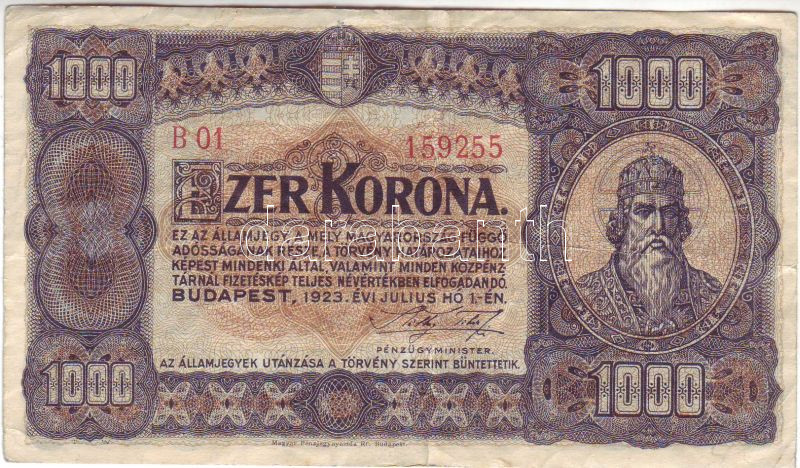 1923. 1000K "Magyar Pénzjegynyomda..." T:II