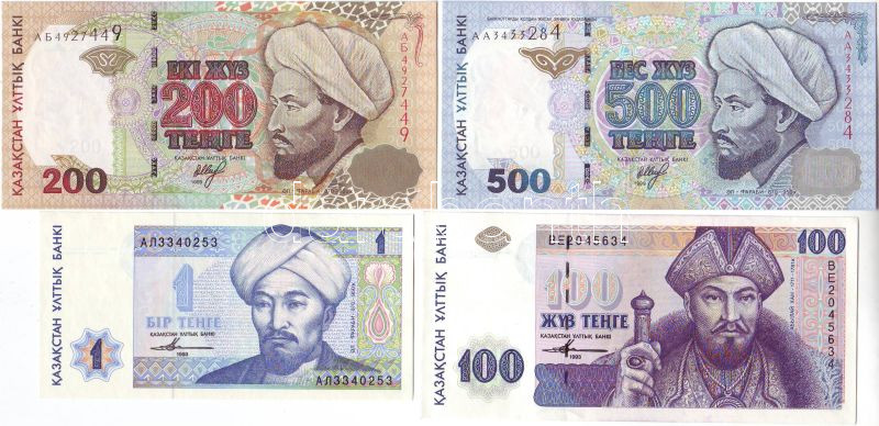 Kazahsztán 1993-99. 1T + 100T + 200T + 500T T:I