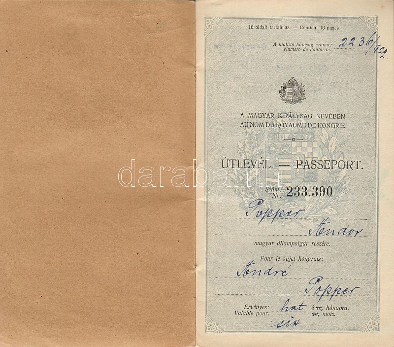 1920 Nagycímeres útlevél