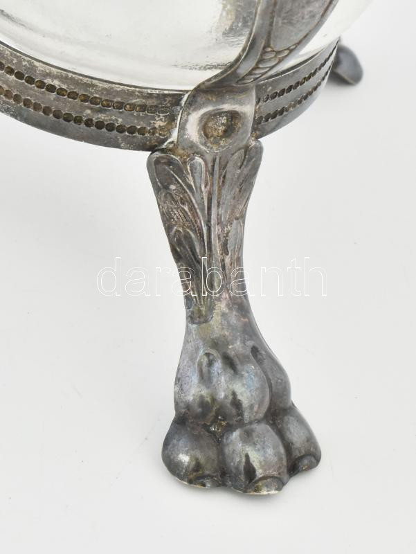 Antik potpourri tartó. Három oroszlánkarmos ezüstözött fém lábon áll, ...