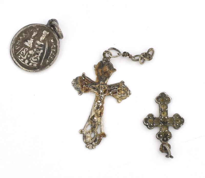 2 darab ezüst (Ag) kereszt és fém medál, gilosált alpakka kegytárgytar...
