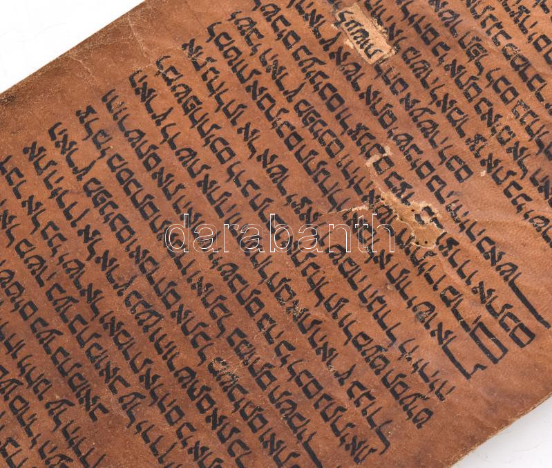 Etióp tóra töredék, állati bőrből készített pergamenen, kisebb sérülésekkel, feltekerve, 52,5x16,5 cm